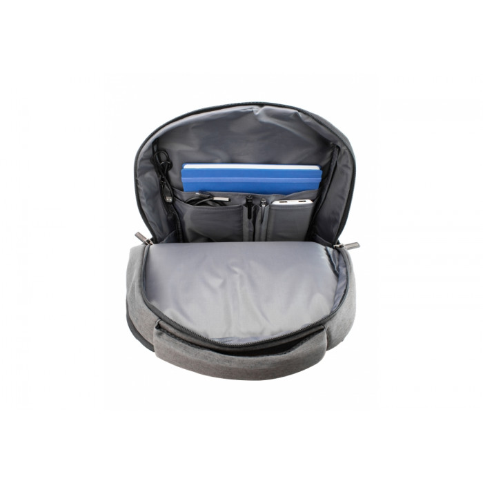 Розмір: 44*29*15 см. Матеріал: поліестер з РЕ вставкою на фасаді; зовнішній USB порт; анатомічна спинка з м'якими вставками; Laptop-кишеня; 1 відділення на блискавці; 1 передня кишеня на блискавці, органайзер; металева фурнітура, подвійні застібки; міцна ручка; спинка ущільнена PE вставкою; ергономічні S-подібні регульовані лямки, бічні кишені з розширенням, світловідбивні елементи.