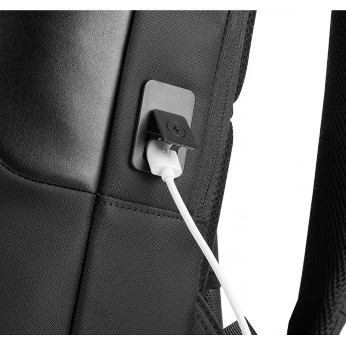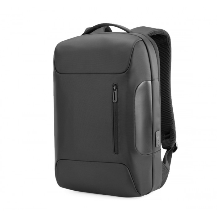 Рюкзак для ноутбука 15,6''. Тканина водонепроникний 100% поліестер фібра. Має велике відділення, з фіксаторами для ноутбука та планшету, 1 фронтальна кишеня, одна бокова прихована кишеня, USB порт,. М'яка спинка, лямки з пасивною системою вентиляції. Ущільнена м'яка підкладка. Розмір 44Х30Х14 см.Нанесення шовкодрук, термоперенос