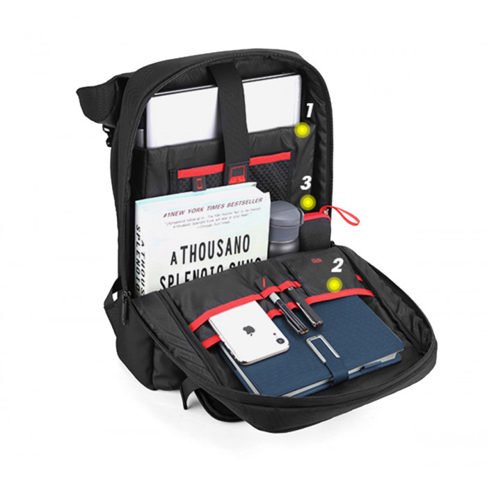 Рюкзак з відділенням для ноутбука 15,6” та відділенням для ipad.Тканина водонепроникний 100% поліестер + PU, має USB Port, великий відділ та різні кармани органайзери, кишеня Anti theft (RFID) ,прихована кишеня на лямці для карток, на задній спинці ремінь для валізи. Розмір 46Х31Х14. Нанесення шовкодрук, термоперенос