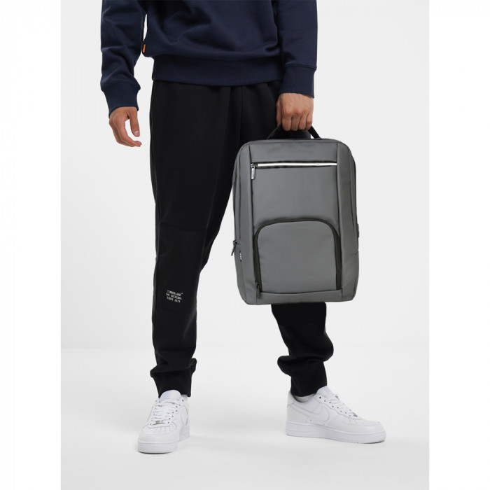 Рюкзак міський має продуману конструкцію: одне основне відділення на блискавці з м’яким відсіком для ноутбука та внутрішніми кишенями для гаманця, телефона та інших дрібниць. Зовнішні кишені на блискавках та зручна бічна кишеня для пляшки або парасолі. Вбудовані світловідбивальні елементи розміщені на лямках і верхній частині рюкзака для кращої видимості в темну пору.