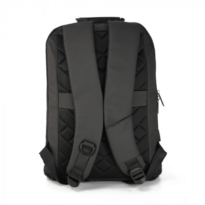Рюкзак для ноутбука має продуману конструкцію: просторе основне відділення обладнане м’якими кишенями для ноутбука і планшета, з фіксуючою липучкою. Є достатньо місця для документів, книг та інших речей. Для аксесуарів передбачена сітчаста кишеня на блискавці — зручно зберігати мишку, навушники або кабелі. Зовні — дві кишені на блискавках: одна з горизонтальною, інша з вертикальною застібкою. Широкі плечові ремені м’які, зі сітчастою внутрішньою стороною, що забезпечує комфорт і вентиляцію. Довжина регулюється. На одній лямці — пряжка для кріплення дрібниць, на іншій — додаткова кишеня.