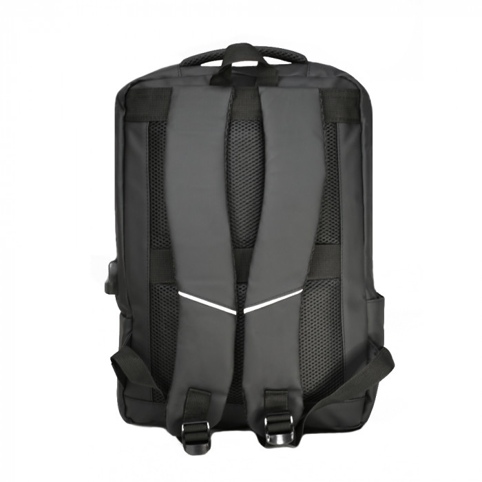 Рюкзак міський має продуману конструкцію: одне основне відділення на блискавці з м’яким відсіком для ноутбука та внутрішніми кишенями для гаманця, телефона та інших дрібниць. Зовнішні кишені на блискавках та зручна бічна кишеня для пляшки або парасолі. Вбудовані світловідбивальні елементи розміщені на лямках і верхній частині рюкзака для кращої видимості в темну пору.