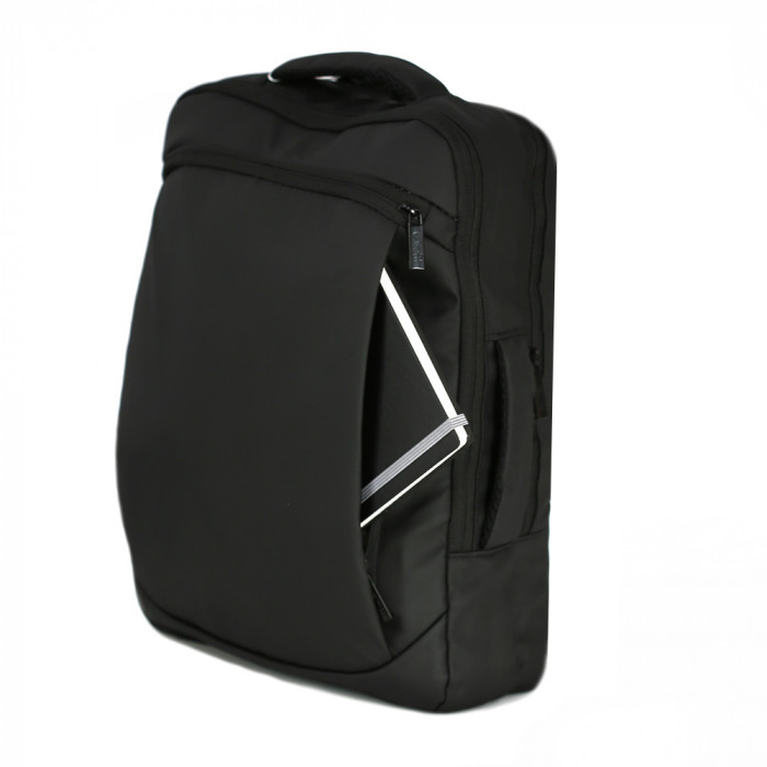 - Рюкзак обладнаний міцною ручкою для перенесення, а також має поперечну ручку на бічній панелі й може перетворитися в невеличку валізу.
