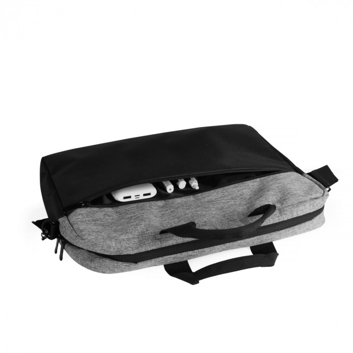 Сумка для ноутбука 15". Основне відділення, відділення для ноутбука з м'яким ущільнювачем, одна внутрішня кишеня на блискавці та одна зовнішня кишеня на блискавці та з іншого боку ремінь-тримач для фіксації на валізі.
