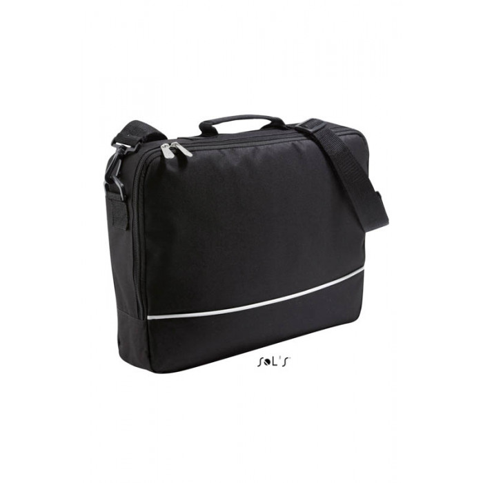 Конференц-сумка для документов из полиэстера 600d SOL’S PROJECT. Большое центральное отделение с застежкой-молнией с двойным замком. 2 внутренних кармана, внутренний карман для мобильного телефона, вшитое внутреннее дно, усиленная ручка из нейлона 600D, съемный регулируемый ремень из нейлона для ношения на плече.