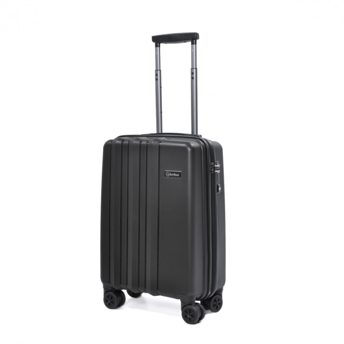Надлегка та міцна валіза на 8-ми (4х2) колесах TM Columbus. Оснащена кодовим замком системи TSA, телескопічною алюмінієвою ручкою з фіксаторами. Всередині обшита тканиною, має 2 відділення, що розділяються діафрагмою та кишеню на блискавці для дрібних речей; еластичні паски для фіксації речей.