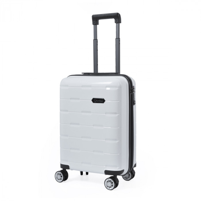 Надлегка та міцна валіза на 8-ми (4х2) колесах TM Columbus. Оснащена кодовим замком системи TSA, телескопічною алюмінієвою ручкою з фіксаторами. Всередині обшита тканиною, має 2 відділення, що розділяються діафрагмою та кишеню на блискавці для дрібних речей; еластичні паски для фіксації речей.
