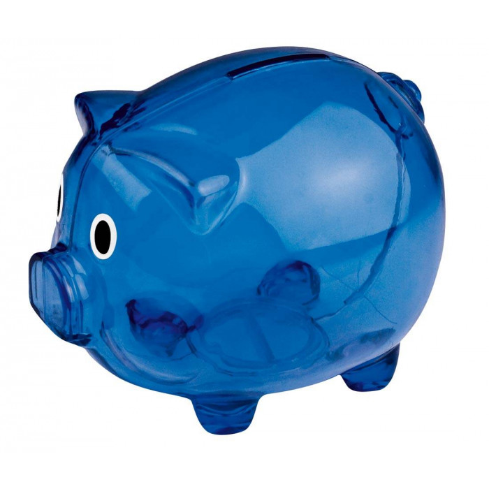 Копилка в форме свинки из прозрачного пластика. Доступна в 4 цветах. Каждая запакована в отдельную картонную упаковку. Группа нанесения: T4