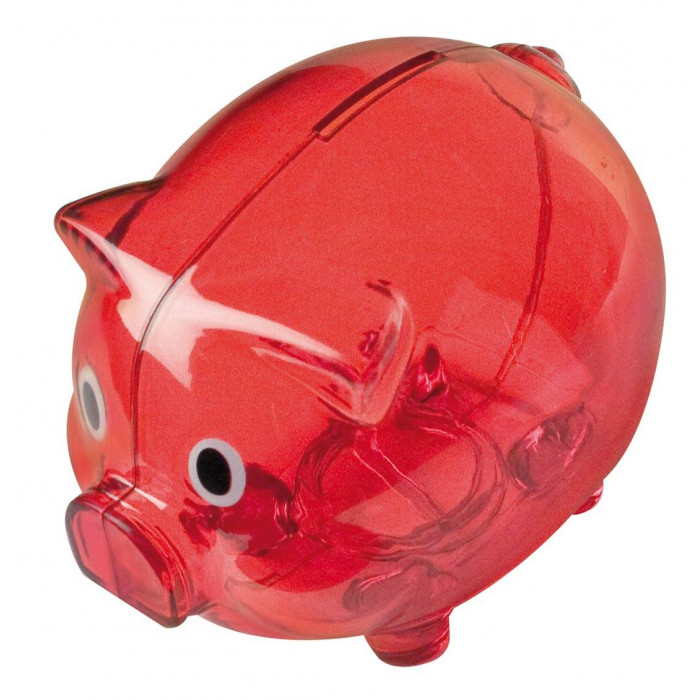 Копилка в форме свинки из прозрачного пластика. Доступна в 4 цветах. Каждая запакована в отдельную картонную упаковку. Группа нанесения: T4