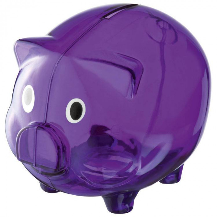 Копилка в форме свинки из прозрачного пластика. Доступна в 4 цветах. Каждая запакована в отдельную картонную упаковку. Группа нанесения: T4