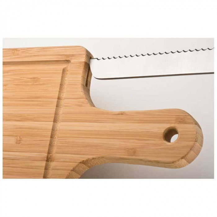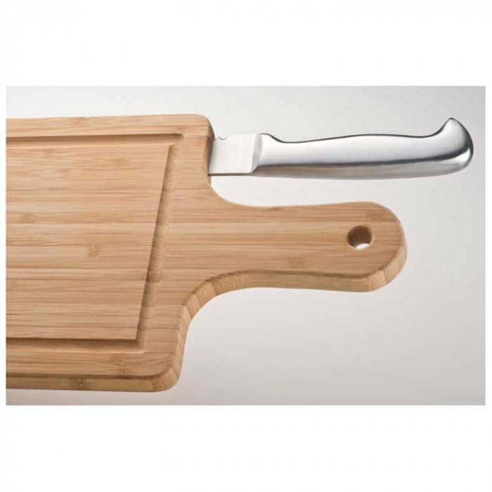 Массивная разделочная доска из бамбука в комплекте с ножом из нержавеющей стали.