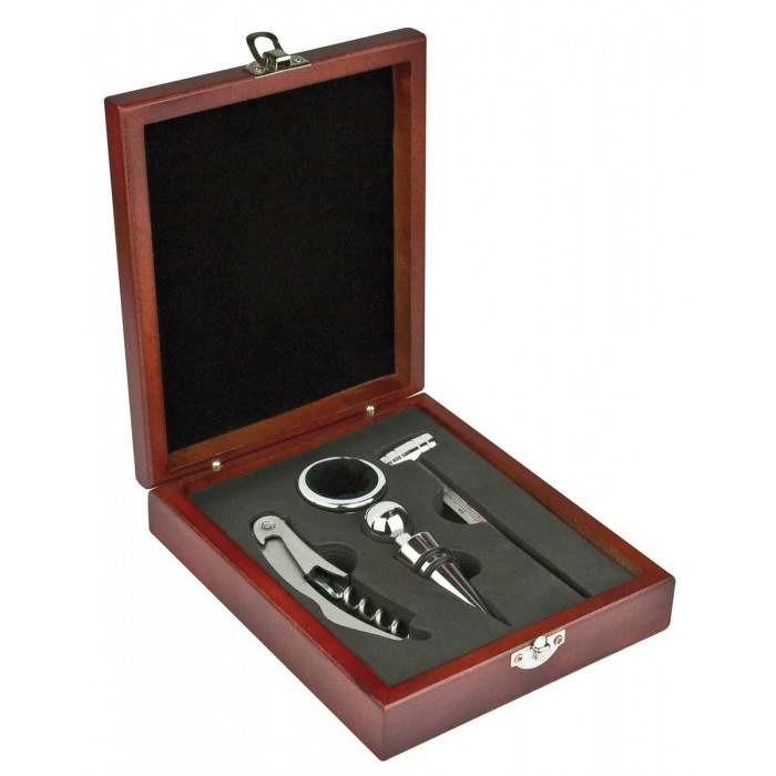 В набор для вина в входят: нож бармена (со штопором, открывашкой для бутылок,и малым ножом), воротник для бутылок, пробка для бутылки и пластиковый термометр. Группа нанесения: S1/L3