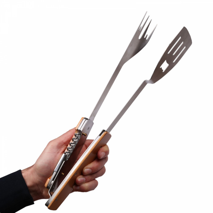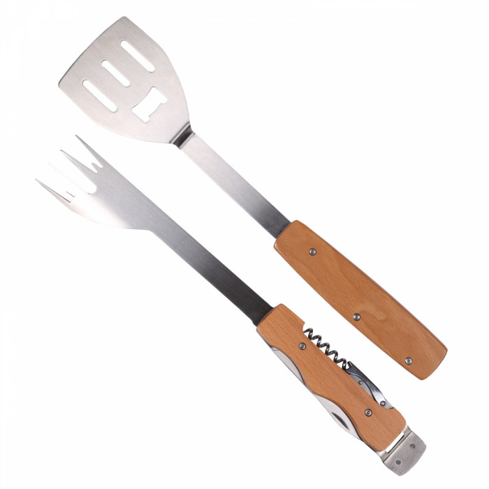 Багатофункціональний набір для барбекю, виконаний з нержавіючої високоякісної сталі. Трансформується у всі необхідні інструменти для приготування страв на вогні. Вага 580 грамів.