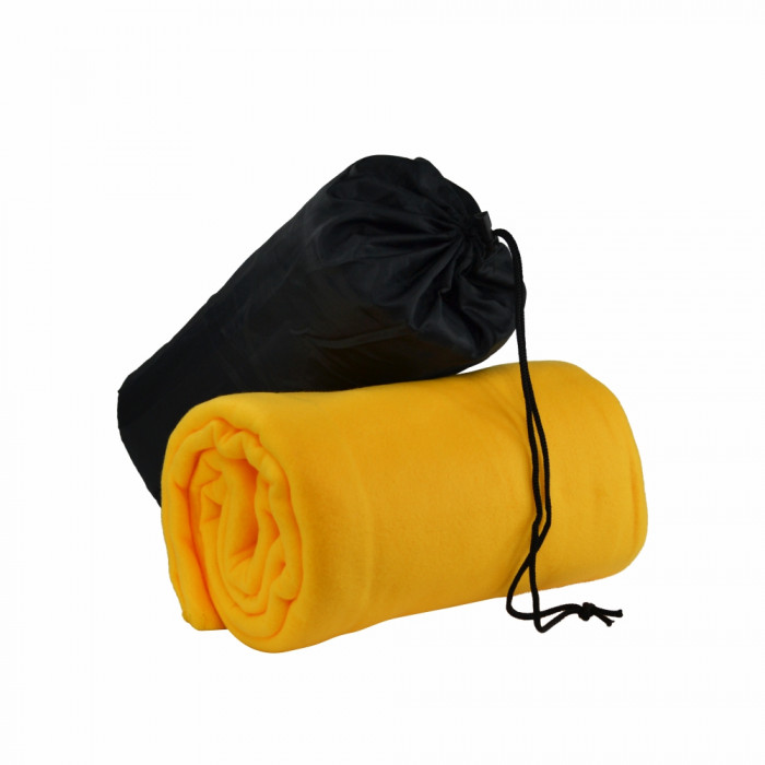 Виготовлений плед з поліестеру, що має досить високу щільність – 240 г/м². Тканина з такими показниками прекрасно зігріває, повільно намокає і швидко сохне. Флісовий плед має практичний колір і зручний чохол для переноски.