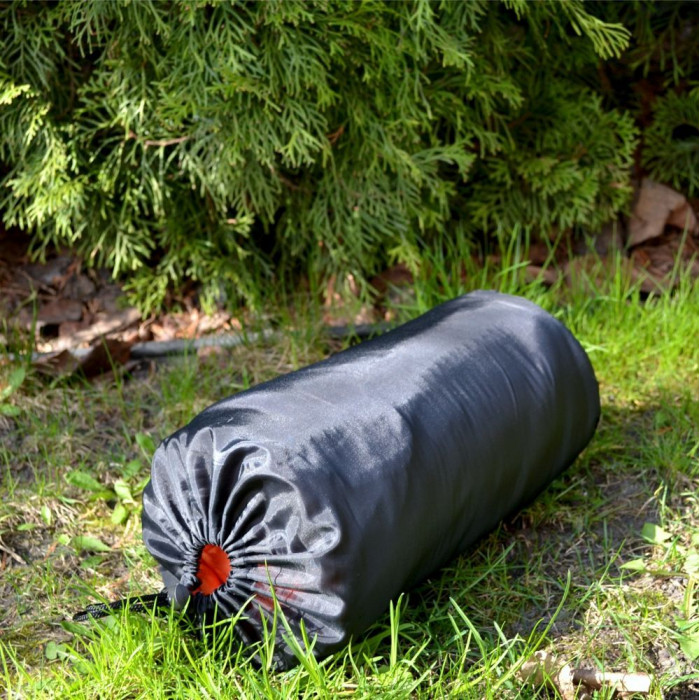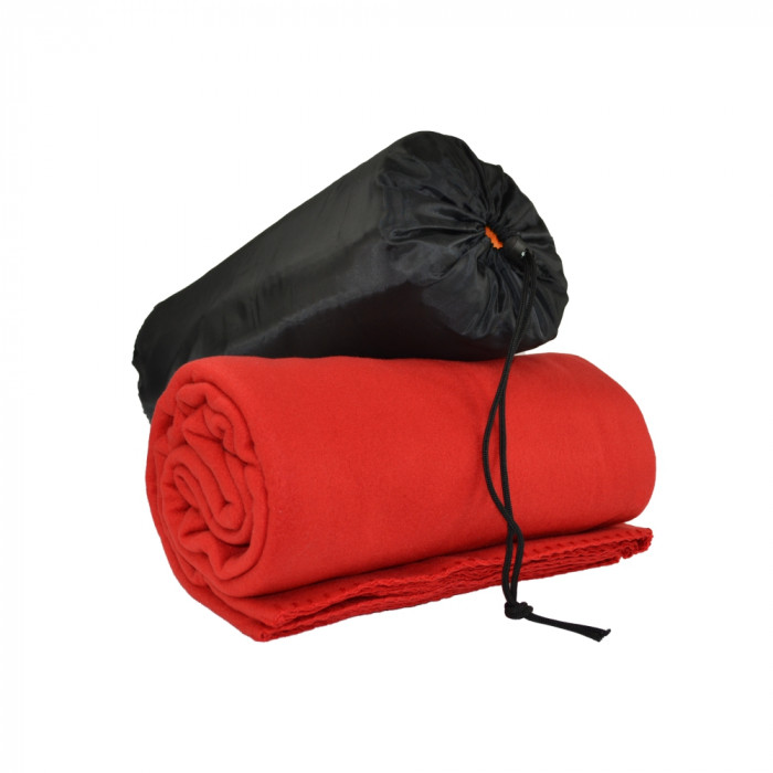 Виготовлений плед з поліестеру, що має досить високу щільність – 240 г/м². Тканина з такими показниками прекрасно зігріває, повільно намокає і швидко сохне. Флісовий плед має практичний колір і зручний чохол для переноски.