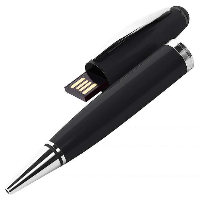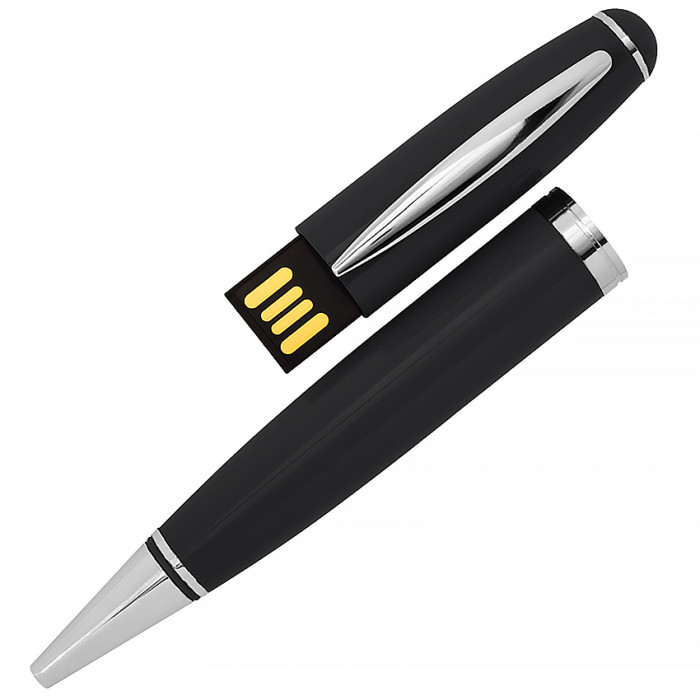 USB флеш-накопитель в виде Ручки черного цвета (модель 1122-2) - очень популярный и востребованный в мире компьютерных принадлежностей и сувениров товар. Эта модель будет символом добрых намерений и открытости. Разместив на корпусе изделия Ваш корпоративный логотип, подобный сувенир можно будет преподнести Вашим клиентам как знак искренности и клиентоориентированности. Они, наверняка, оценят особый и консервативный дизайн устройства, на металлическом корпусе которого ненавязчиво сияют несколько серебристых вставок. Сам чип usb «спрятан» в колпачок и визуально не бросается в глаза, но, при необходимости, его можно будет легко извлечь и использовать по назначению. Кроме того, металлический корпус надежно защитит флешку и от влаги, и от механических поломок. Опционально Вы можете выбрать синий или черный цвет чернил.