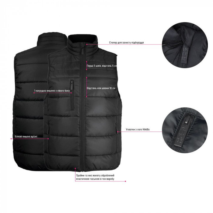 Жилет Nikibo Flow — стильна модель унісекс для корпоративного стилю та щоденного використання. Водовідштовхуючий матеріал і продуманий крій забезпечують комфорт у прохолодну погоду. Завдяки різній відстані між швами жилет виглядає сучасно та зберігає достатню площу для брендування корпоративним логотипом. Практичні кишені й акуратні деталі роблять його зручним для активного використання. Нагрудна кишеня на блискавці має продуману місткість — у ній легко поміститься навіть смартфон формату Pro Max.