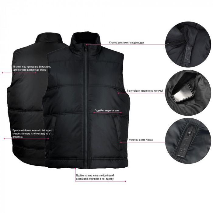 Жилет Nikibo Thermal — функціональна модель унісекс, створена для корпоративного стилю та повсякденного використання. Завдяки водовідштовхуючому матеріалу, продуманому крою та додатковим практичним деталям жилет забезпечує комфорт і надійність у щоденному носінні. Приховані кишені, подвійні акцентні шви та спеціальна блискавка на спині для зручного доступу до внутрішньої частини жилета роблять цю модель максимально універсальною. Широка площа між швами дозволяє легко наносити брендування.