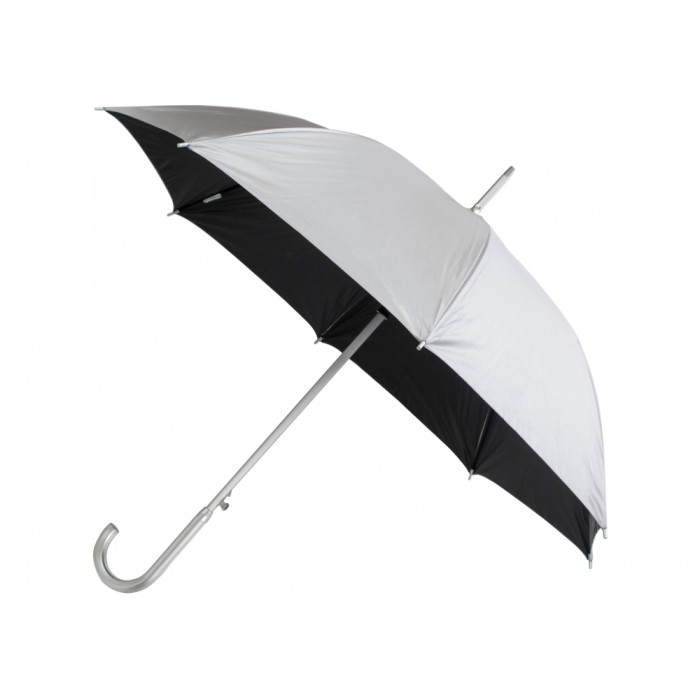 Напівавтоматична парасоля-тростина з алюмінієвою ручкою і металевим каркасом. Розміри: довжина 89 см, діаметр куполу 104 см. Матеріал куполу-поліестер. Зовнішня частина купола вкрита сріблястим матеріалом, який елегантно поєднується з алюмінієвою ручкою.