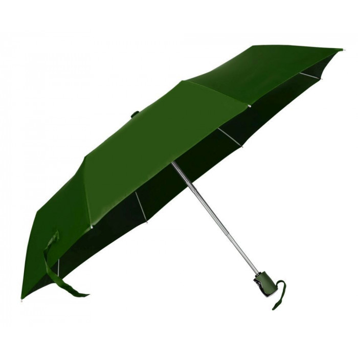 Складной автоматический зонт, с пластиковой ручкой в цвет полотна. Диаметр купола: 108 см