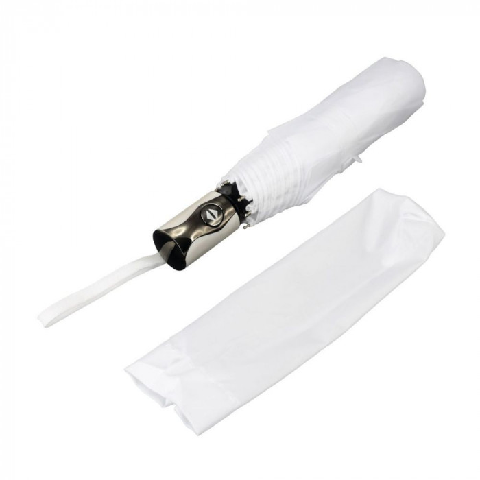 Складной автоматический зонт, с пластиковой ручкой в цвет полотна. Диаметр купола: 108 см
