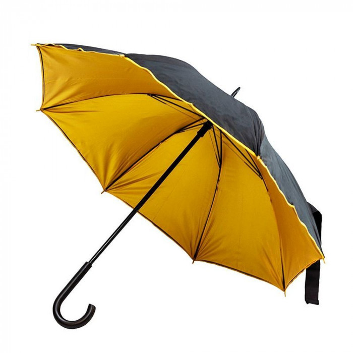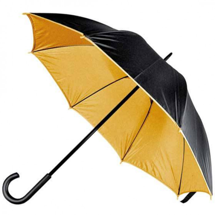 Стильный зонтик с двойным слоем нейлона - верх чёрного цвета а снизу цветной материал. Рекламная печать будет смотреться красиво, если её выполнить тем же цветом, как нижний нейлоновый слой.