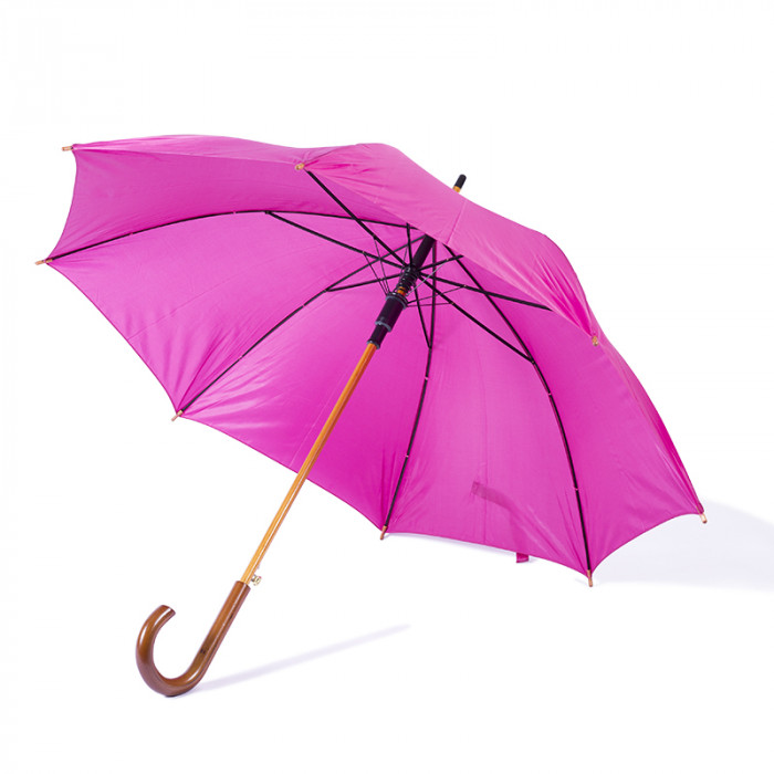 Зонт-трость полуавтомат, с деревянной изогнутой ручкой. Диаметр купола: 108 см